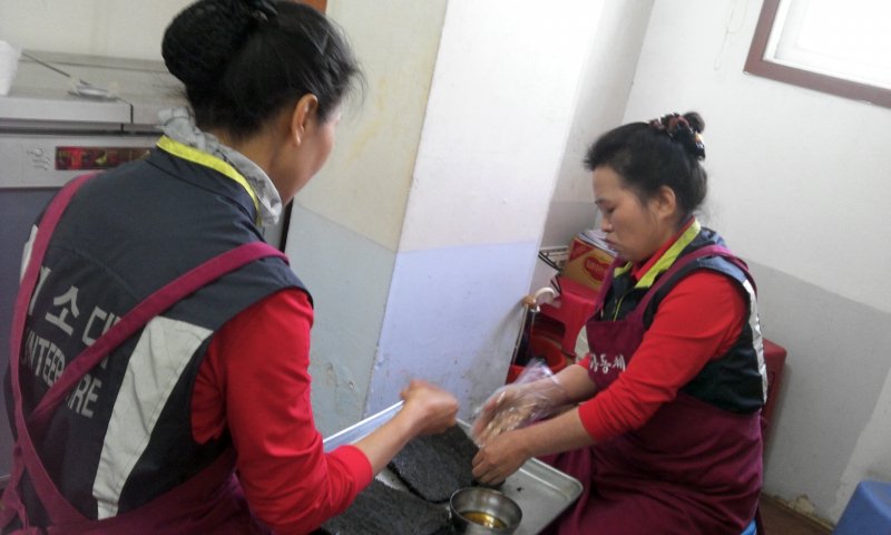 2012년 3월 27일(09:00 ~ 14:00) 흥업여성의용소방대(대장 오오석)는 매월 정기적으로 참여하는 밥상공동체 식사봉사에 다녀왔습니다.