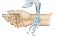 - 비눗물로 손을 잘 씻고 가능하면 의료용 장갑을 낀다.