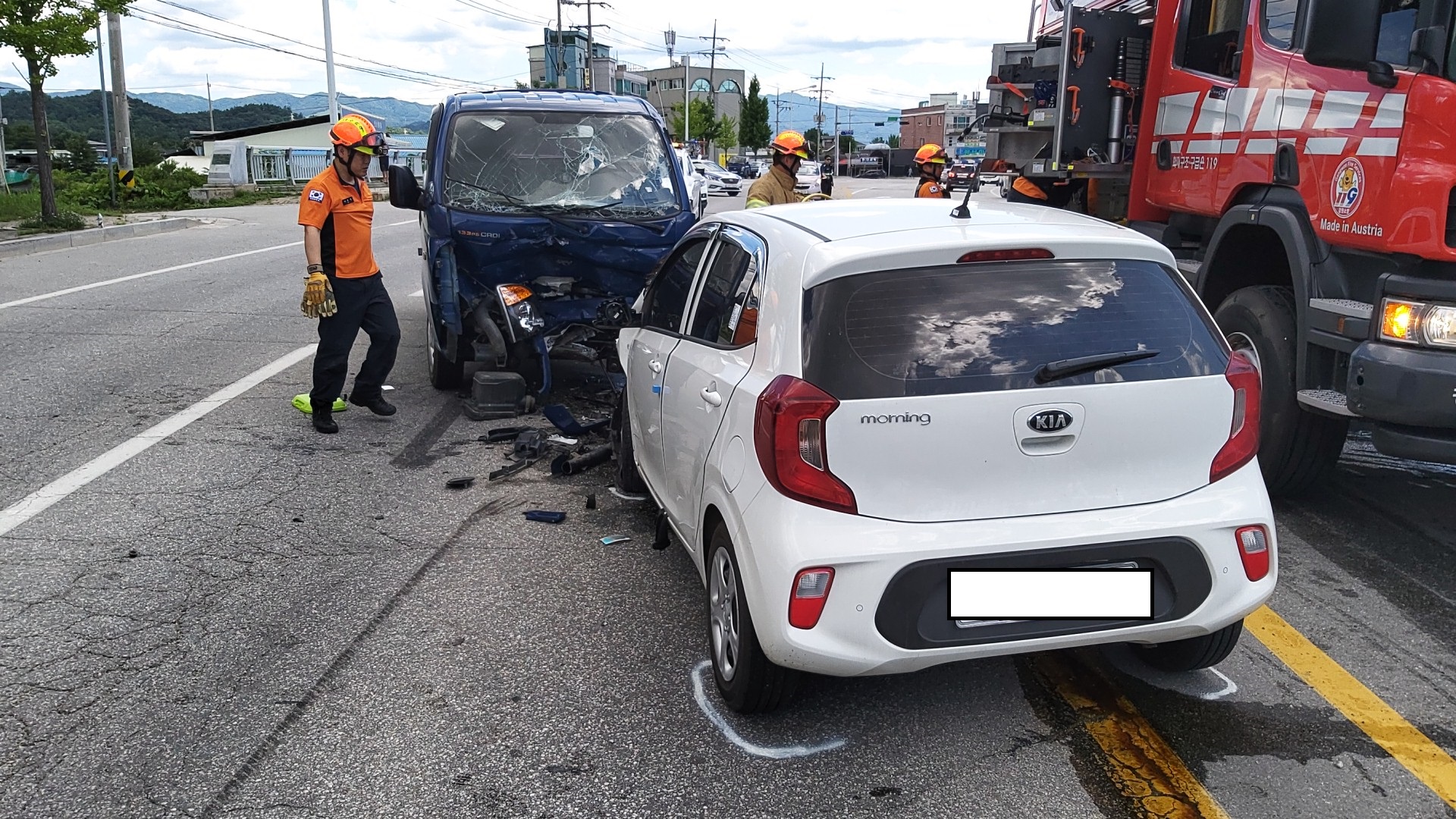 6. 22.(토) 13:31, 모닝과 포터 충돌, 중경상 3명(모닝2-중상, 포터1-경상), 응급처치 및 병원이송