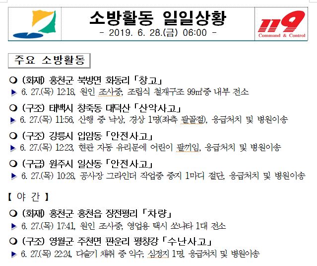 소방활동 일일상황(6. 28. 금) 06:00