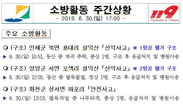 소방활동 주간상황(6. 30. 일) 17:00