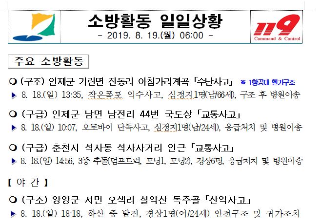 소방활동 일일상황(8. 19. 월) 06:00