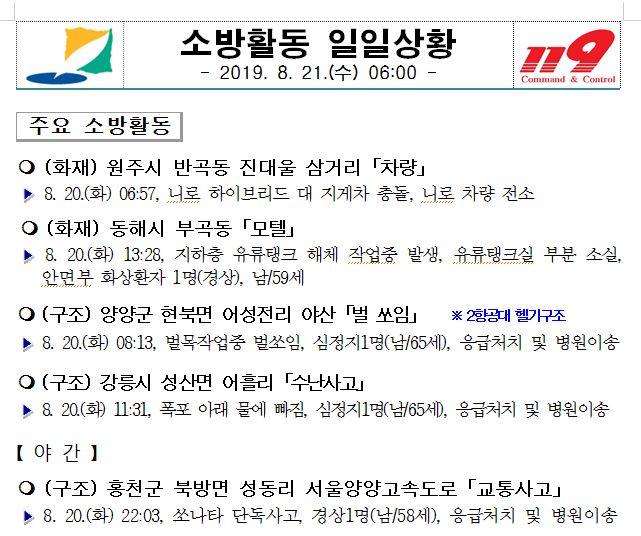 소방활동 일일상황(8. 21. 수) 06:00