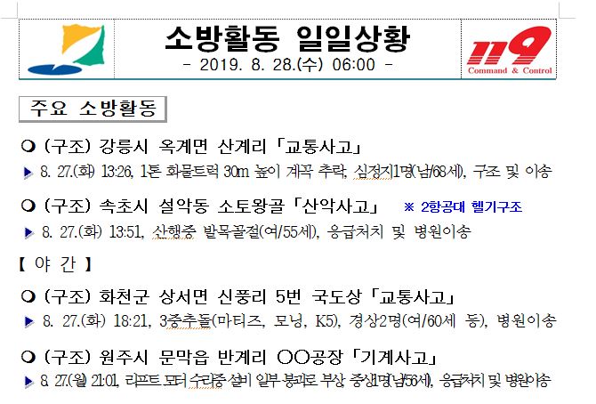 소방활동 일일상황(8. 28. 수) 06:00