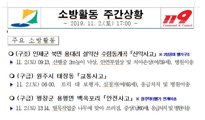 소방활동 일일상황(11. 2. 토) 17:00