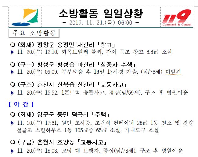 소방활동 일일상황 (11. 21. 목) 17:00