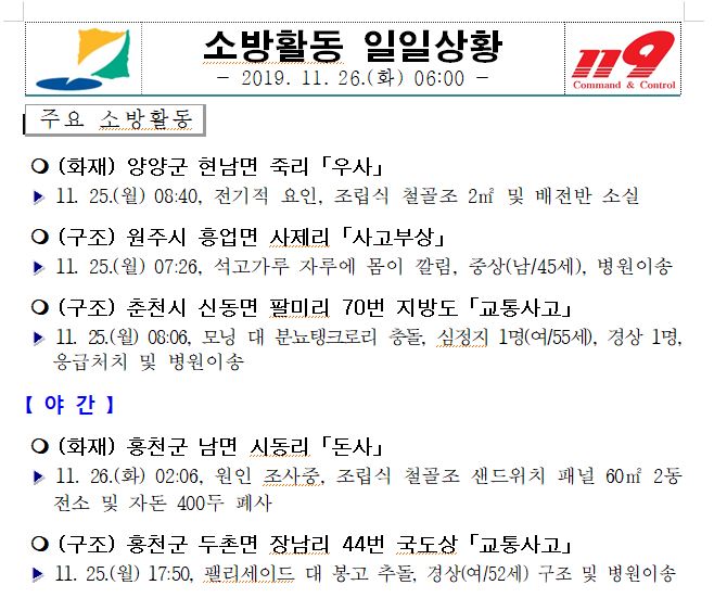 소방활동 일일상황 (11. 26.화) 06:00