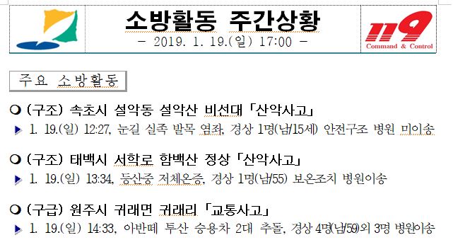 소방활동 주간상황(1.19. 일) 17:00