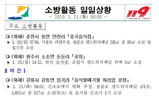 소방활동 일일상황 (1. 21. 화) 06:00