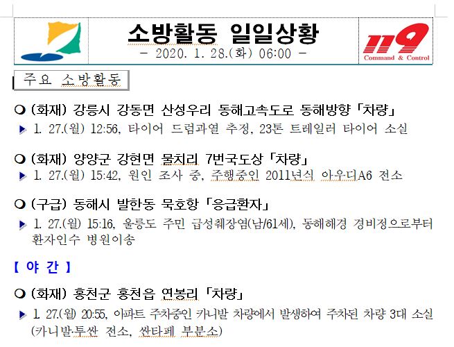 소방활동 일일상황 (1. 28. 화) 06:00
