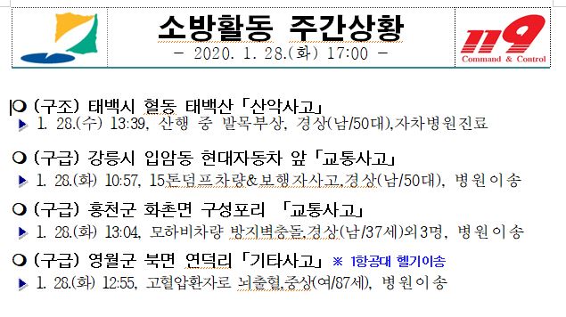 소방활동 주간상황 (1. 28. 화) 17:00