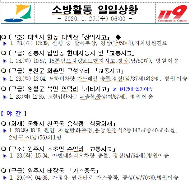 소방활동 일일상황 (1. 29. 수) 06:00