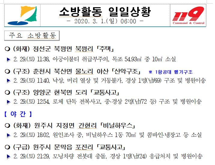 소방활동 일일상황 (3. 1. 일) 06:00