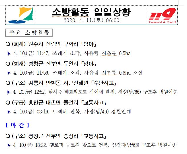 소방활동 일일상황 (4. 11. 토) 06:00