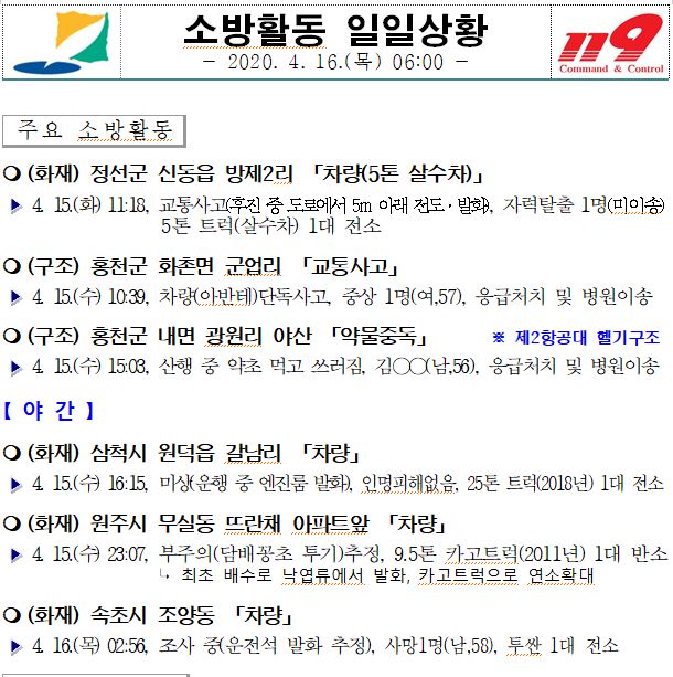 소방활동 일일상황 (4. 16. 목) 06:00
