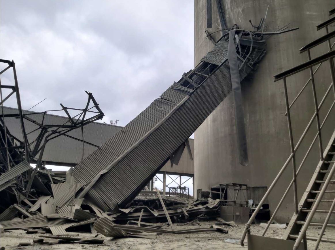 3. 내용 : 원통형 사이로에 시멘트 원료(크랭크)를 나르는 컨베이어 벨트 구조물(조립식 철골빔)이 붕괴됨
