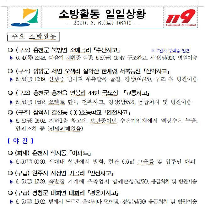소방활동 일일상황 (6. 6. 토) 06:00