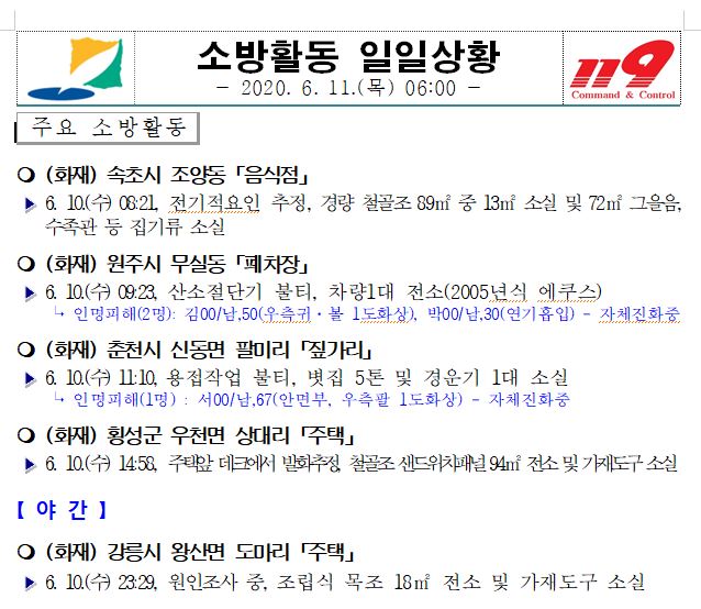 소방활동 일일상황 (6. 11. 목) 06:00