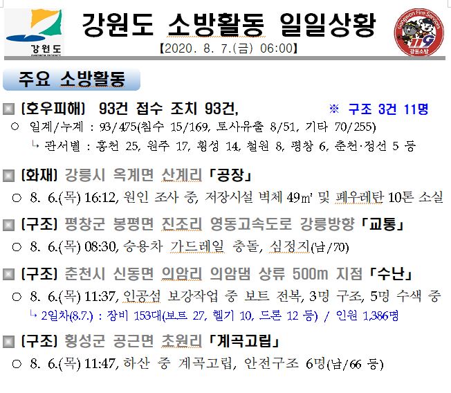 소방활동 일일상황 (8. 7. 금) 06:00