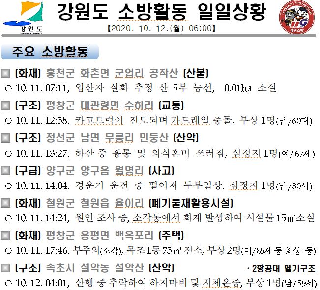 강원도 소방활동 일일상황(10. 12. 월).JPG