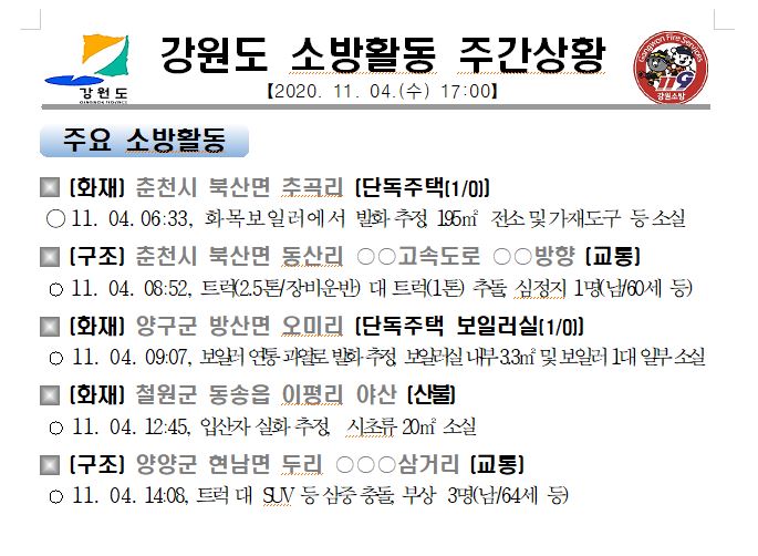 강원도 소방활동 주간상황(11. 04. 수) 17:00