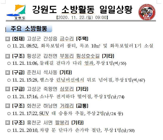강원도 소방활동 일일상황(11.22.일) 06:00