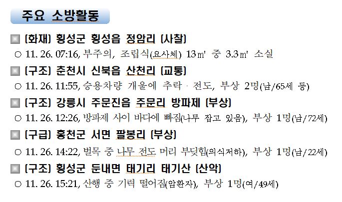 강원도 소방활동 주간상황(11.26.목) 17:00