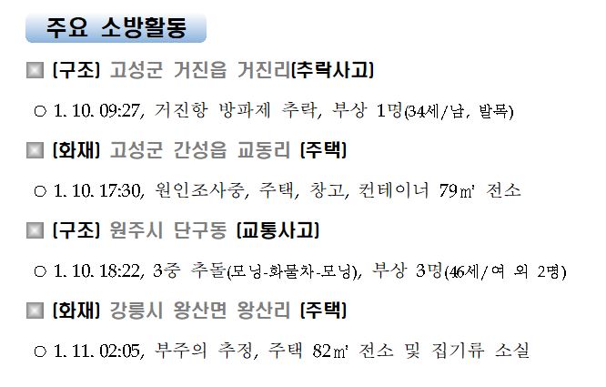 강원도 소방활동 일일상황(1. 11. 일) 06:00