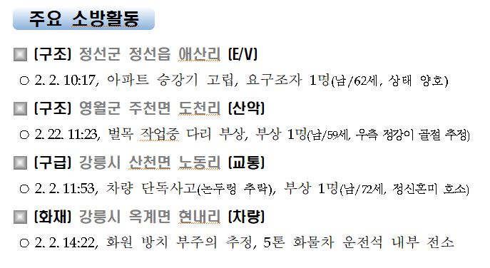 강원도 소방활동 주간상황(2. 2. 화) 17:00