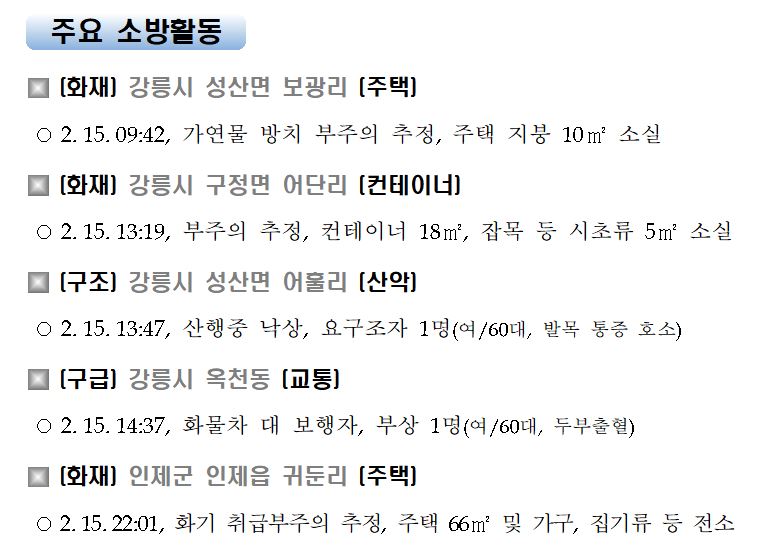 강원도 소방활동 주간상황(2. 16. 화) 06:00