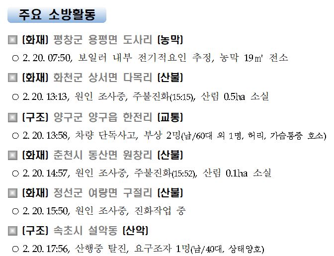 강원도 소방활동 일일상황(2. 21. 일) 06:00