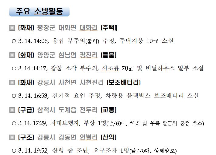 강원도 소방활동 일일상황 (3. 15. 월) 06:00