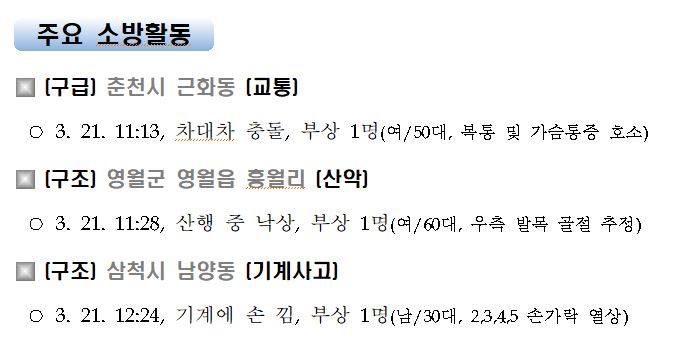 강원도 소방활동 주간상황(3. 21. 일) 17:00