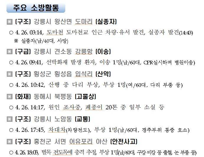 강원도 소방활동 일일상황(4. 27. 화) 06:00