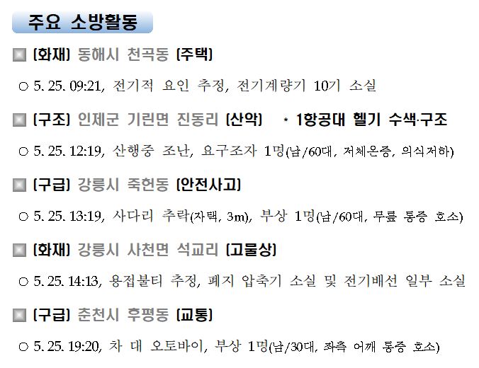 강원도 소방활동 일일상황(5. 26. 수) 06:00