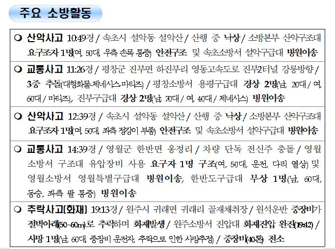 강원도 소방활동 일일상황 (7. 24. 토) 06:00