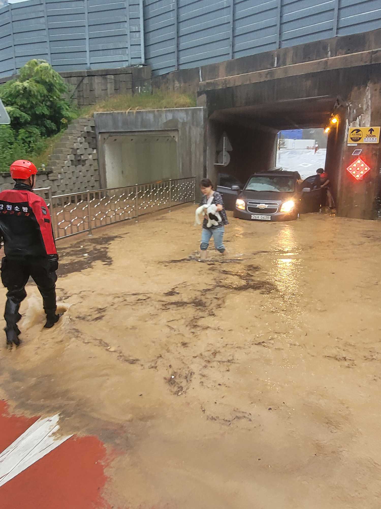 내용 : 지하차도내 올란도 차량 침수되어 고립