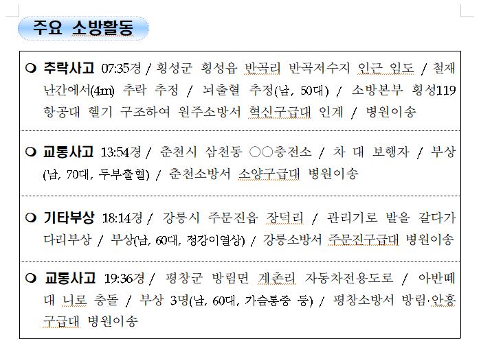 강원도 소방활동 일일상황 (8. 17. 화) 06:00