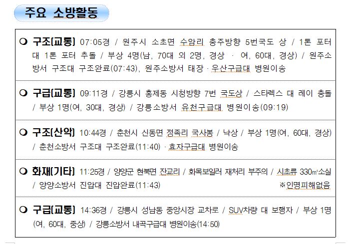 강원도 소방활동 주간상황 (11. 25. 목) 17:00