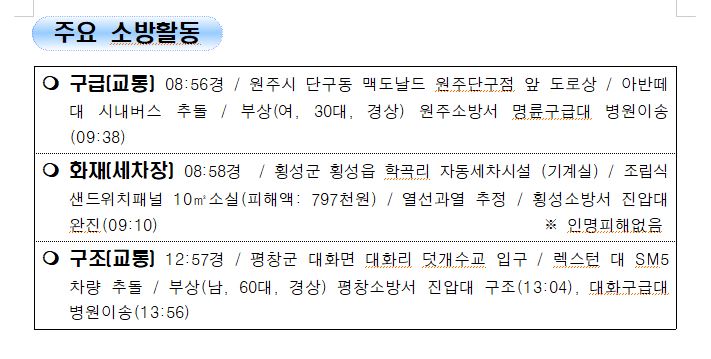119 소방활동 상황보고 (12. 30. 목) 17:00