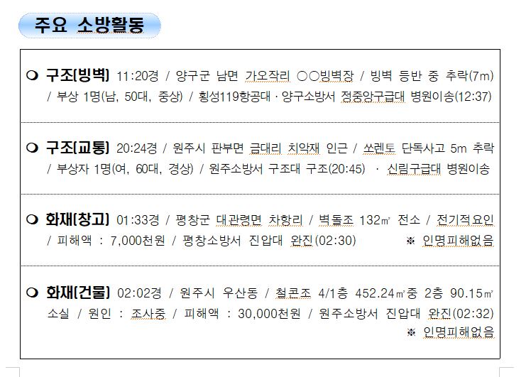 강원도 소방활동 주간상황 (1. 10. 월) 17:00