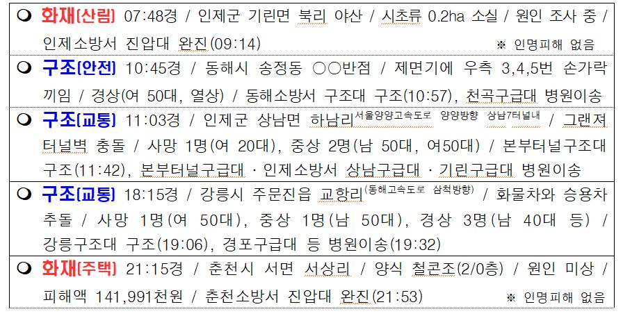 119 소방활동 상황 보고(1. 20. 목) 17:00