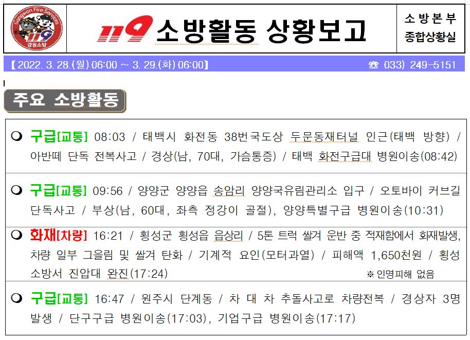 119 소방활동 상황보고(3. 29. 화) 06:00