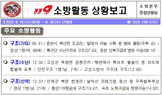 119 소방활동 상황보고(6. 18. 토) 17:00