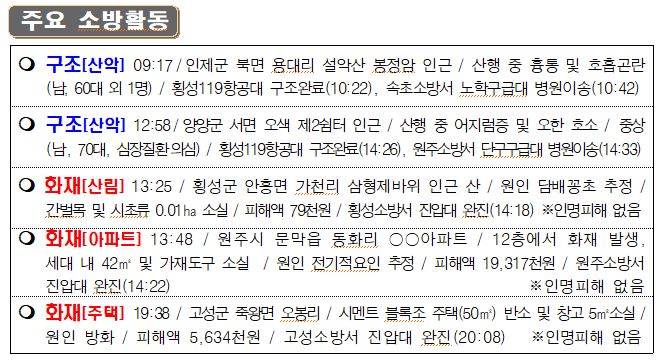 119 소방활동 상황보고(6. 21. 화) 06:00