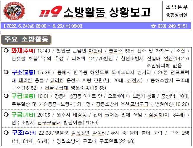 119 소방활동 상황보고(6. 25. 토) 06:00