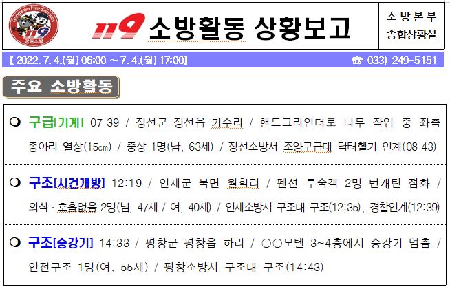 119 소방활동 상황보고(7. 4. 월) 17:00
