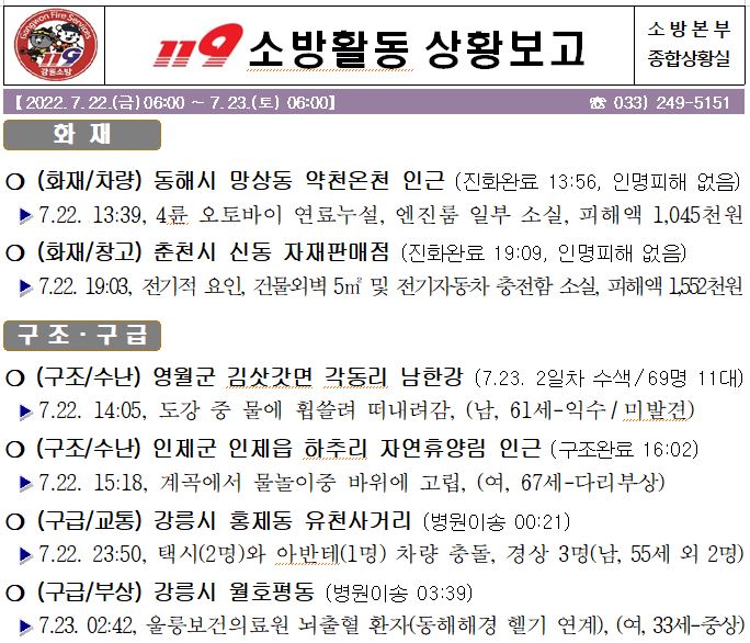 119 소방활동 상황보고(7. 23. 토) 06:00