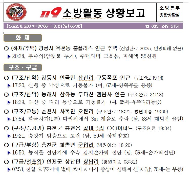 119 소방활동 상황보고(8. 21. 일) 06:00