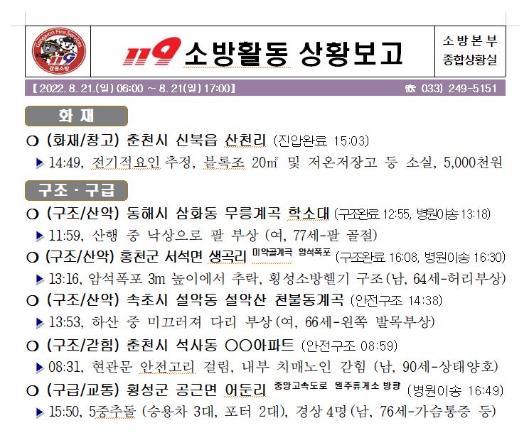 119 소방활동 상황보고(8. 21. 일) 17:00